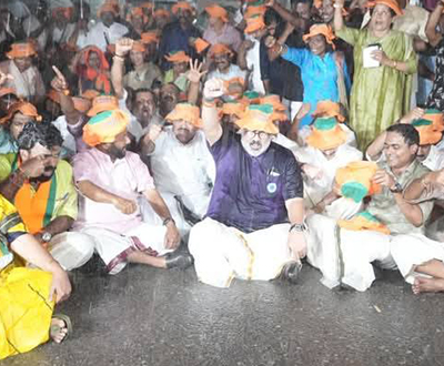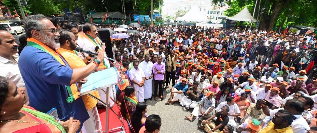 Photos and reports from the day-and-night protests in front of the Secretariat, where S. Suresh joined State President Rajeev Chandrasekhar ji and other senior leaders to demand justice for the faithful.