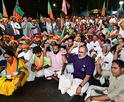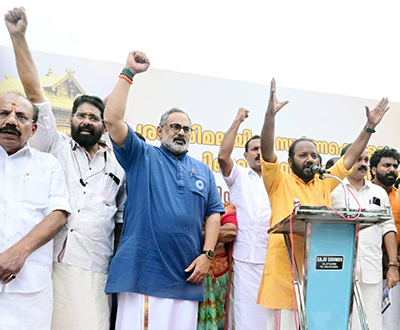 Photos and reports from the day-and-night protests in front of the Secretariat, where S. Suresh joined State President Rajeev Chandrasekhar ji and other senior leaders to demand justice for the faithful.